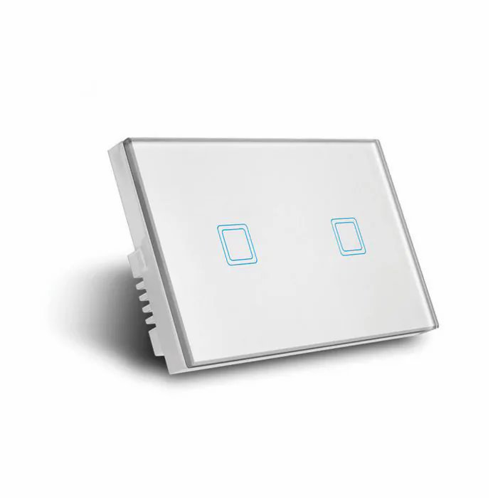 מתג חכם לתאורה עם 2 מפסקים זכוכית טאצ' תומך תדר 2.4GHz Wi-Fi (לא תומך בתדר 5GHz) הפעלה וכיבוי ידניים,